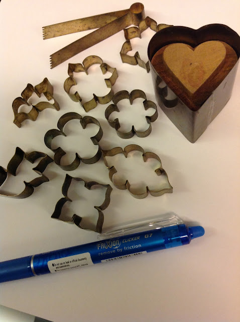 While rampaging through the old family home kitchen I found these little baking nuggets! These traditional 'kueh' cutters have been in the family for at least 50 years I think. Not sure if you can still find these shapes or designs in shops today, I suppose the heart-shaped one is quite common. They still look pretty much as good as new except for some tarnishing.